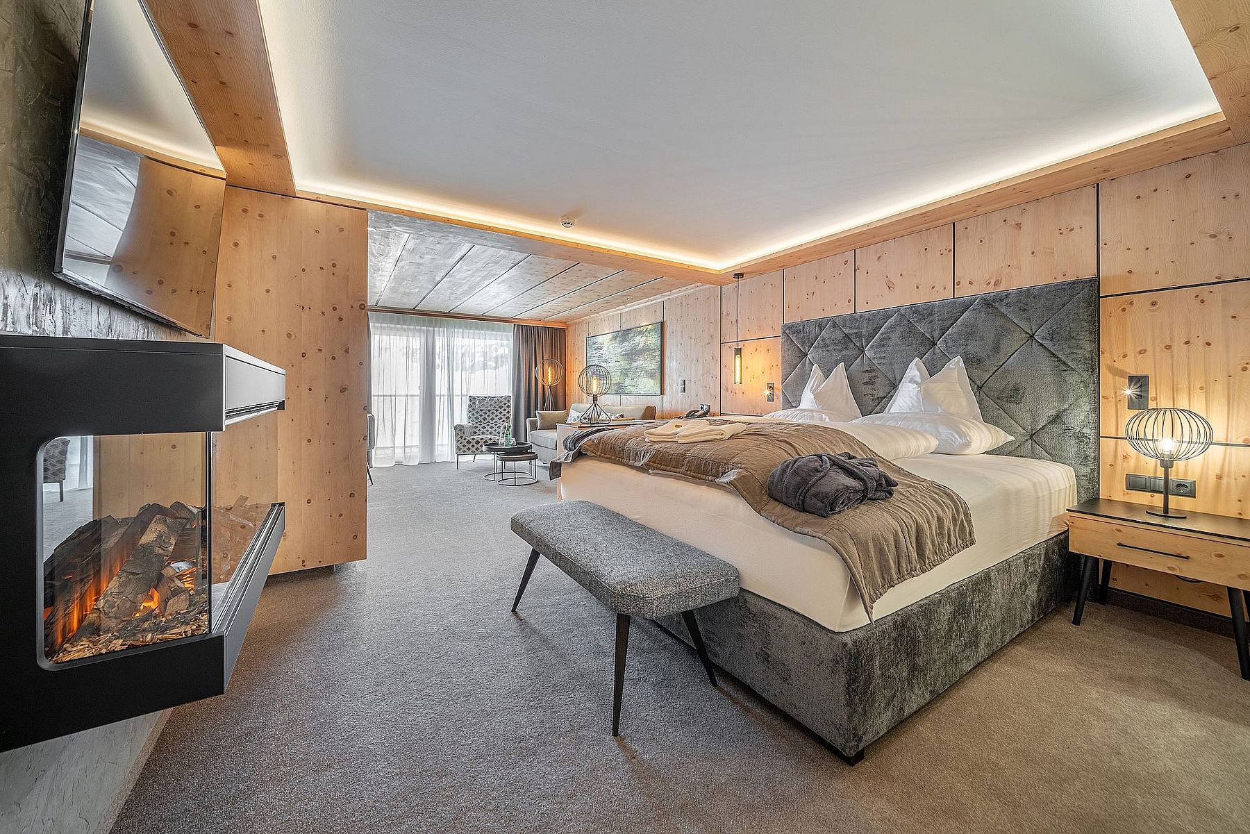 Our junior suite Edelweiss offers room for up to 4 people and its cozy atmosphere allows you to unwind and linger. Enjoy the fantastic view of the Ötztaler Alps from the large balcony.